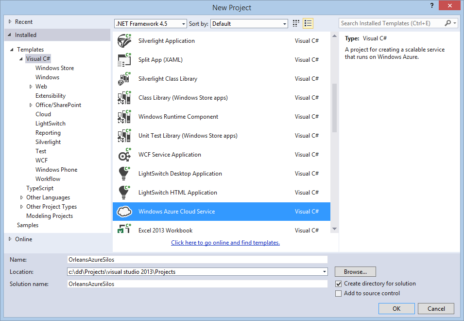 Choose the ‘Windows Azure Cloud Service’ project template: