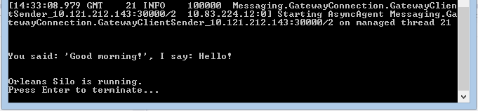 Console.WriteLine("Orleans Silo is running.\nPress Enter to terminate...");